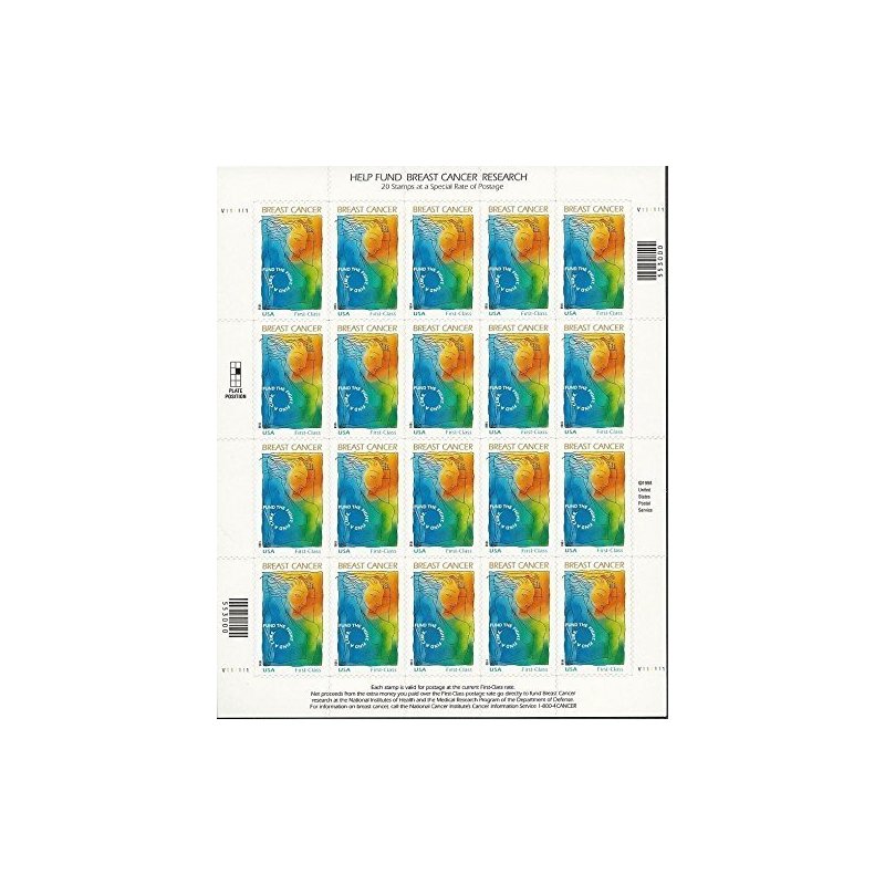 USPS Help Fund Breast Cancer Research Fund the Fight. Find a Cure. (Sheet of 20) Semi-Postal US First-Class Mail Postage Stamps 1998 Scott #B1