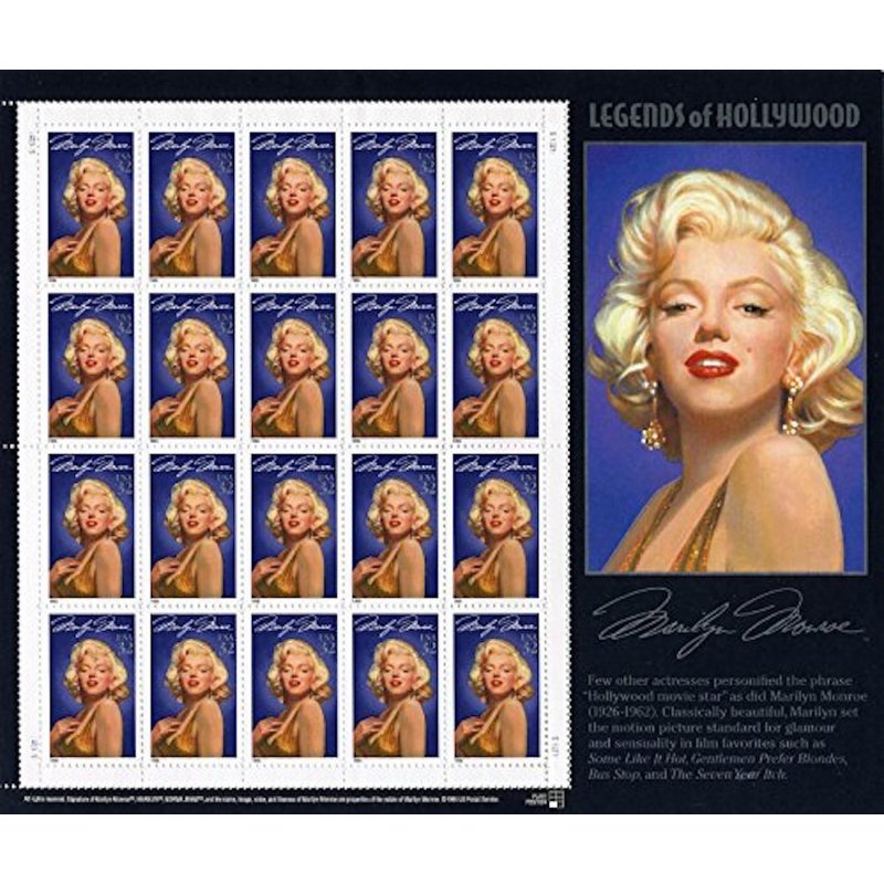 USPS Legends of Hollywood Marilyn Monroe (1926-1962) (Hollywood Movie Star) (Sheet of 20) 32 Cent Postage Stamps 1995 Scott #2967
