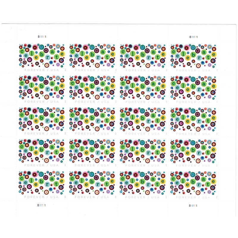 USPS Let's Celebrate Forever Stamps - Sheet of 20 Postage Stamps