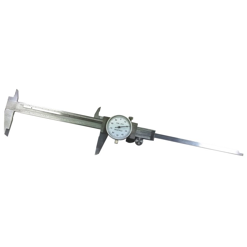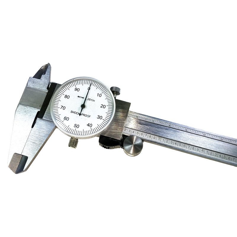 Steel construction caliper 6" dial, Precision Ground Jaws for Accuracy, Jaws Designed for Inside, Outside, and Thread Measurements, Slide Lock Holds Reading in Place. Comes with carrying case.
