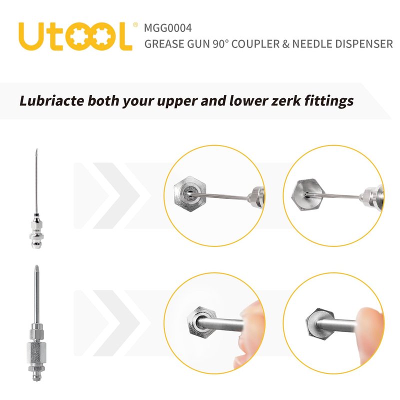 UTOOL Grease Gun Accessory Kit, 90 Degree Coupler, Needle Nozzle, Grease Injection Needle with Cap, for Hard to Reach Grease Zerk Fittings