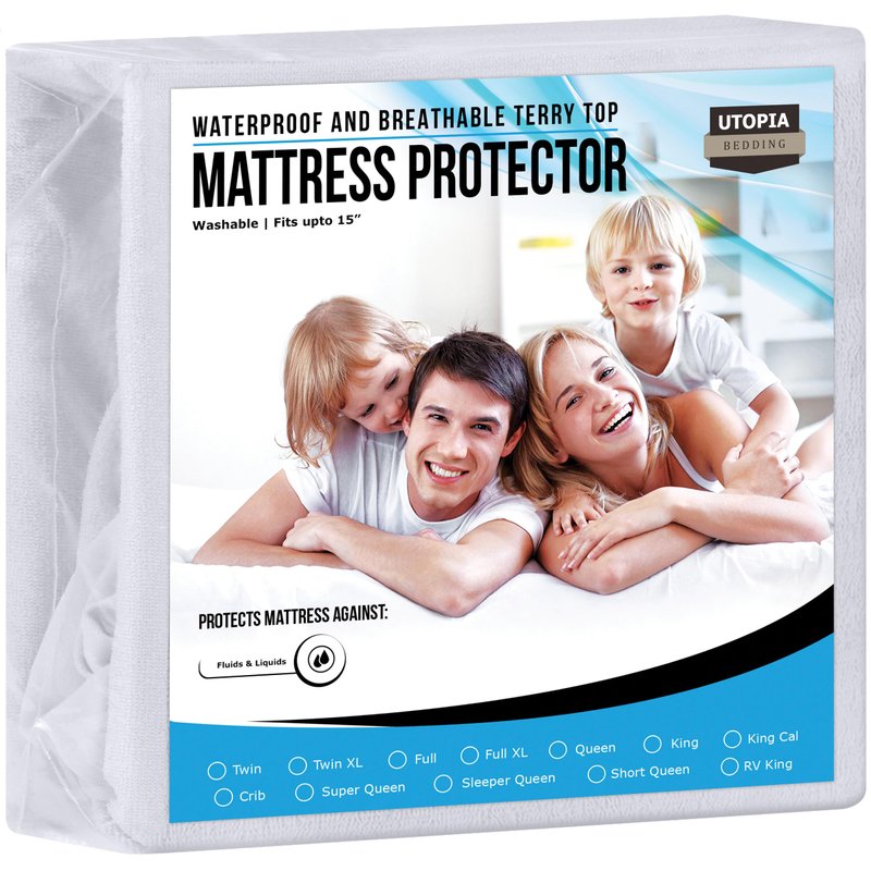 Utopia Bedding Premium Waterproof Terry Mattress Protector Twin 200 GSM, Mattress Cover, Breathable, Fitted Style with Stretchable Pockets