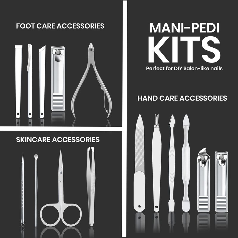 15-Piece Manicure Set for Women Men Nail Clippers Stainless Steel Manicure Kit - Silver