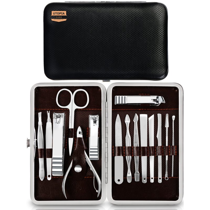 Utopia Care 15 Pieces Manicure Set - Stainless Steel Manicure Nail Clippers Pedicure Kit - Professional Grooming Kits, Nail Care Tools With Luxurious Travel Case (Silver)