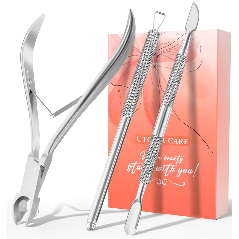 Utopia Care Cuticle Trimmer with Cuticle Pusher, Nail Cuticle Trimmer Set, Manicure Kit, Pedicure Kit, Sharp Cuticle Nippers Professional, Cuticle Pusher Tool, Cuticle Remover Tool Kit (Silver)