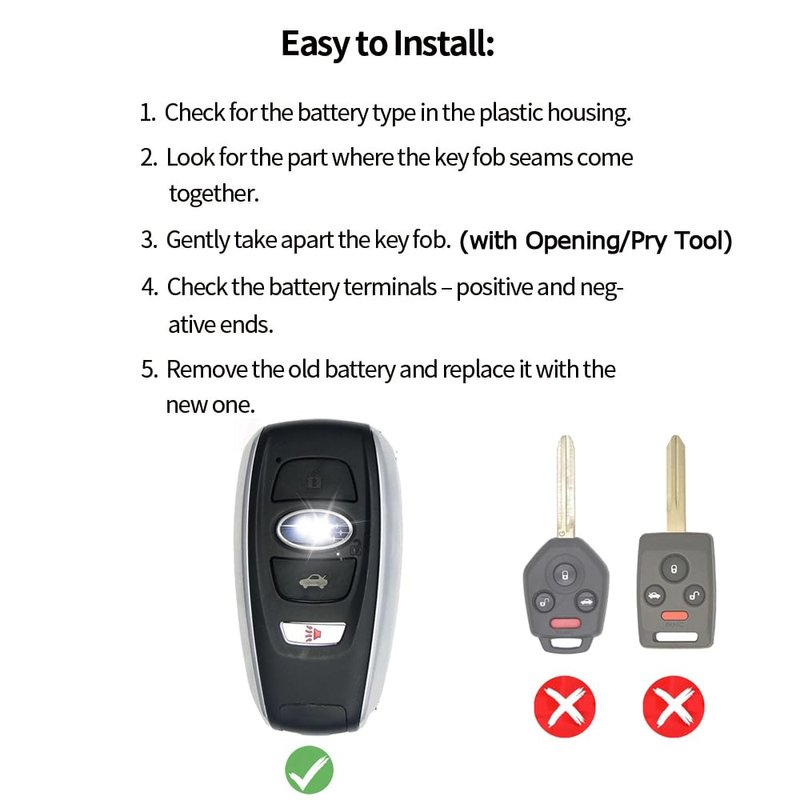 - ✔ It is Original OEM Battery as Provided by Manufacturer, CR2032 -- Same batteries as provided by OEM , Note: COMPATIBLE WITH SMART KEY REMOTES ONLY , This is a specialized battery used in select Subaru Smart Key remotes.