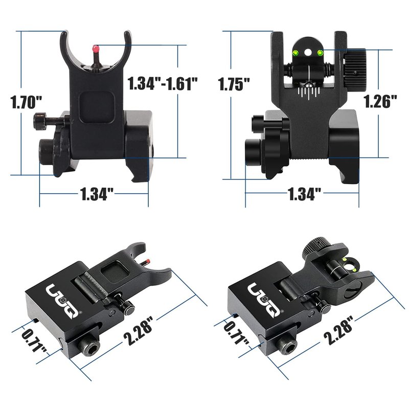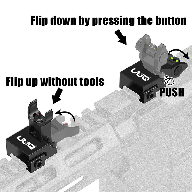 UUQ Fiber Optic Iron Sights,Flip Up Front and Rear Sites with Red&Green Dot,BUIS Backup Sight Set for Airsoft Gun, Tool-Free Adjustable Front Sight Rapid Transition,Fits Picatinny or Weaver Rails