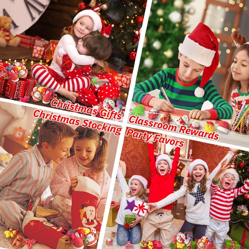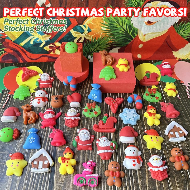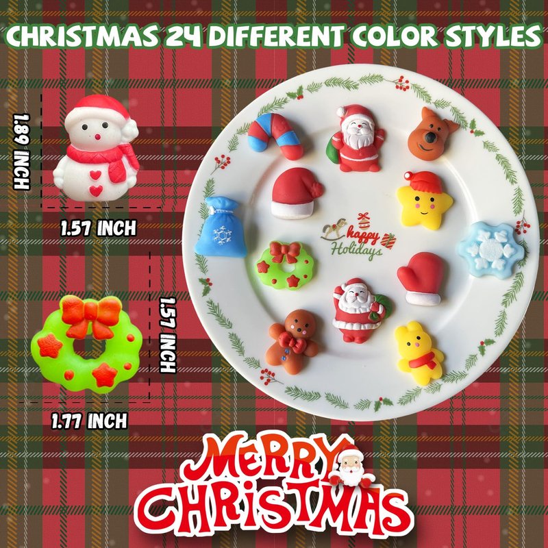 - CHARMING CHRISTMAS DESIGN: Get ready for the most adorable Christmas celebration ever! Our Xmas squishies toys is adorned with Christmas elements, such as Santa Clauses, snowmen, reindeer, snowflakes, Christmas trees, and other endearing Christmas designs, guaranteeing endless enjoyment for everyone! Christmas mini squishies toys are not food, they are not candy, and they are definitely not to be eaten.