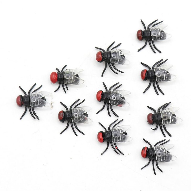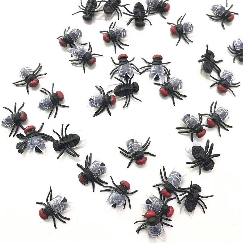 UUYYEO 100 Pcs Mini Plastic Flies Realistic Flies Fake Insects Prank Bug Trick Joke Props April Fools Day Props Halloween Party Favors