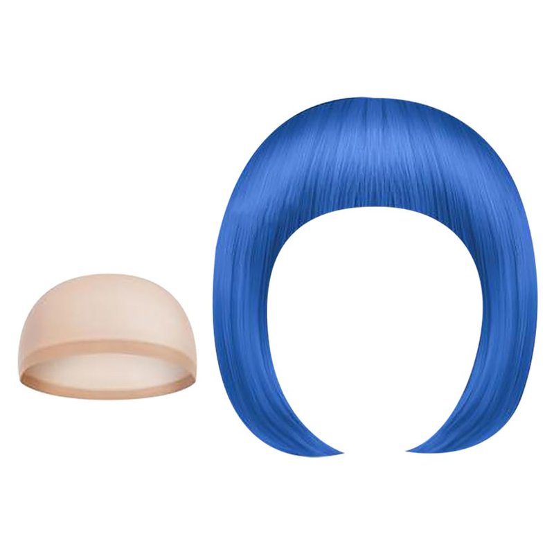 UUYYEO Neon Fancy Dress Wig Cosplay Party Wig Colorful Costume Wig Night Club Wig Straight Synthetic Bob Wig with Mesh Wig Making Cap Elastic Hair Net for Women Girls Blue