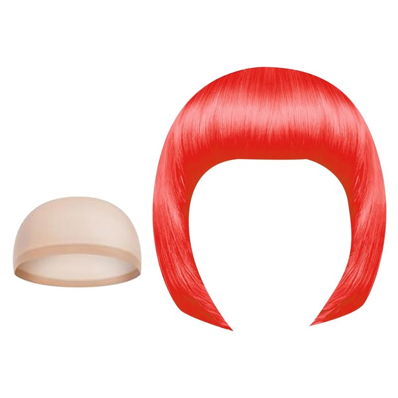 UUYYEO Neon Fancy Dress Wig Cosplay Party Wig Colorful Costume Wig Night Club Wig Straight Synthetic Bob Wig with Mesh Wig Making Cap Elastic Hair Net for Women Girls Red