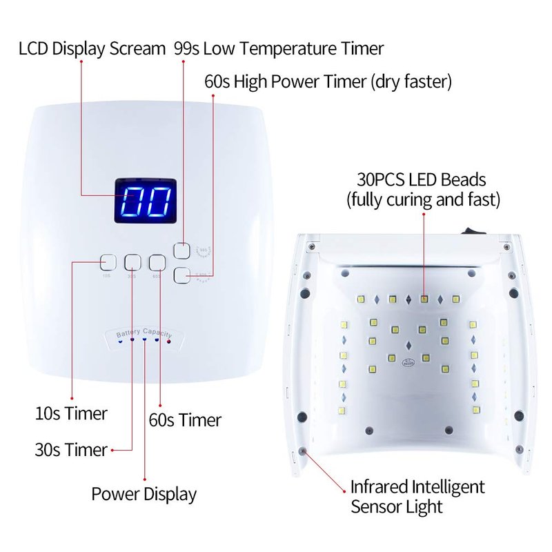 Dry faster - The LED nail light with 48 watts and 30 lamp beads to dry your gel nails faster.