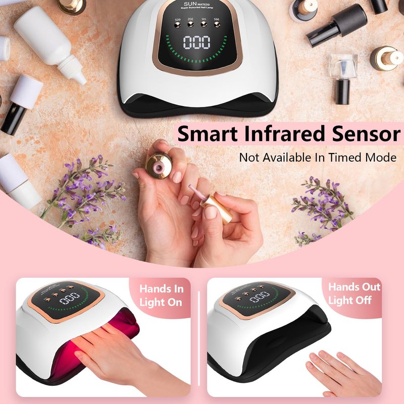 - [Smart Auto Sensor & Temperature Protection] Our Gel UV LED Nail Lamp is equipped with a smart infrared sensor that can operate automatically without the need to set a timer. Simply put your hands in to turn the light on and remove them to turn it off, making it perfect for use at home or in a salon. Furthermore, our nail uv lamp includes temperature protection for your hands, ensuring you have the most comfortable salon experience possible!
