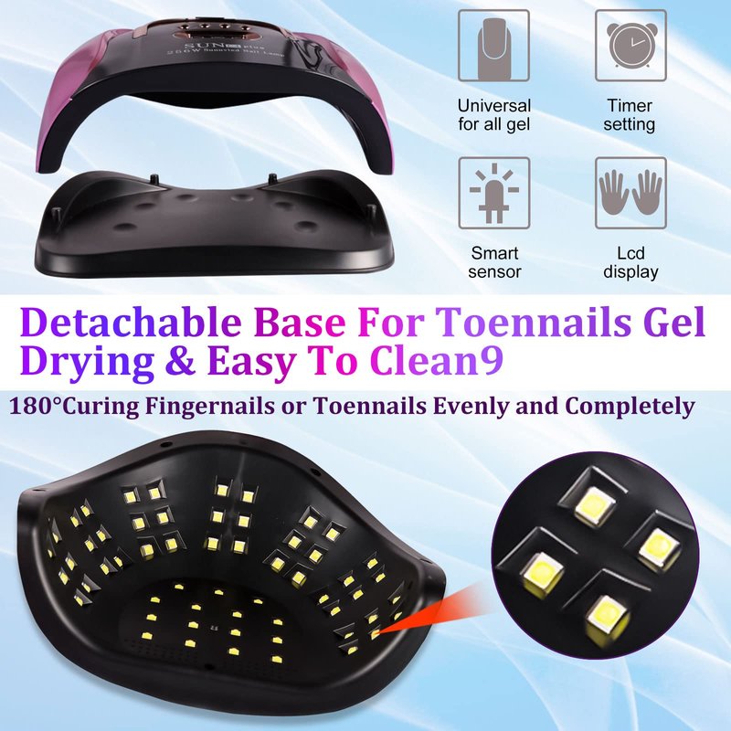 - 【High Power&Fast Curing Nail】Our professional nail polish curing machine featured the highest configuration UV light technology. 256W high power will curing nail gel polish faster. 57 UV+LED lights are scattered evenly on the top and sides of the lamp. So your nails will be cured properly.