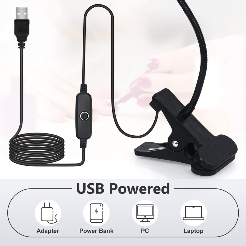 - USB Powered UV Light: The uv nail dryer fixtures are adjustable lamps. UV nail light has 3W LED lamp beads, and portable clamp uv light for nail is of low power consumption with long life, at the same time uv lamp for gel nails is safe, environmentally friendly. lamp equipped with a control switch, gel nail lamp support all power supplies with USB charging, including computer host, mobile phone charger, etc.. UV nail lamp plug and play can be used for nail salon.