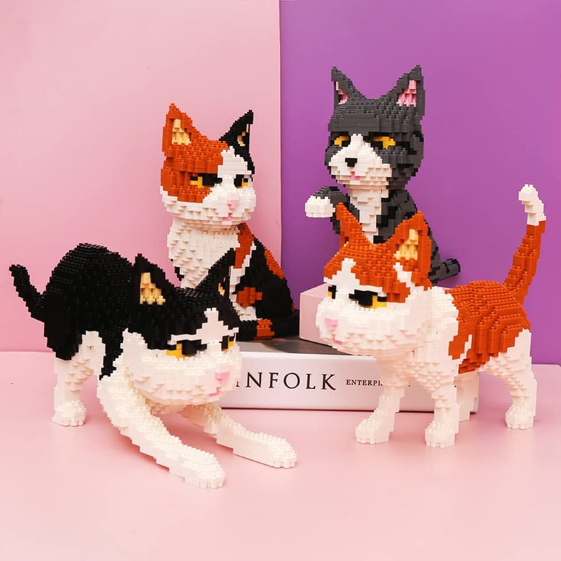 - Cute Walking Orange Cat Design: A DIY micro-sized building block set contains 1390 pieces in vibrant shades of colors, each cat is realistic and cute.