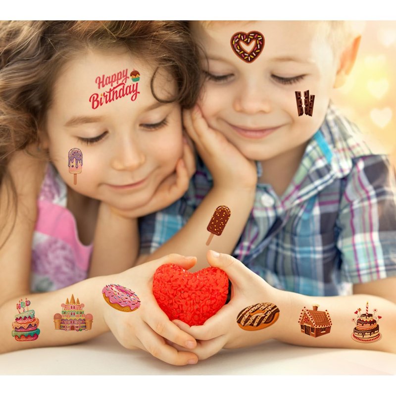 - 【DESSERT PARTY TEMPORARY TATTOO THEME】:Let your kids start a party experience like no other with these designed dessert cake tattoos Whether they're dressing up for a themed party or simply adding a touch of fun to their day-to-day activities.These dessert cake temporary tattoos are a great way to spark joy in their hearts.
