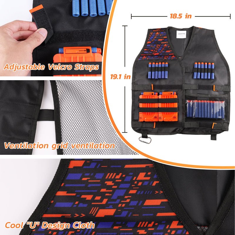 - The stylish and personalized tactical vest has lots of room for a lot of equipment, lets your boys decisive tactical advantage for Nerf wars. Enjoy outdoor games with friends!