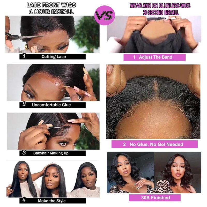 - Wear And Go Glueless Wig Advantage: It Is Very Easy To Install Than Traditional Lace Wig, But Not Easy To Fall Off. 4x4 Pre-Cut Lace, Pre-Plucked Natural Hairline, No Need Glue, No Need Gel, Just Wear And Go In 30 Seconds, You Can Have A Perfect Looking. Friendly To Beginners.