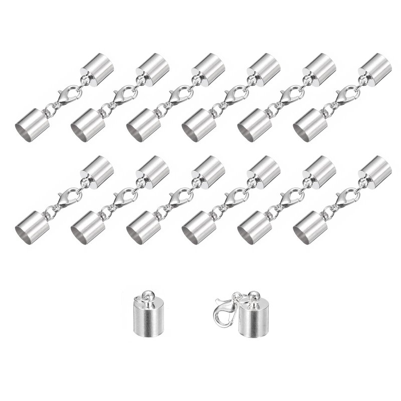 uxcell 20Sets 8mm Leather Cord End Caps with Lobster Claw Clasps, Barrel Terminators for DIY Making Leather Bracelets, Silver Tone