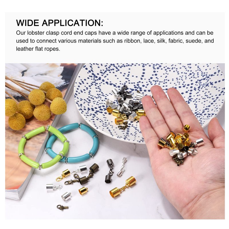 - WIDE APPLICATION - Our lobster clasp cord end caps have a wide range of applications。 They are good for DIY crafting projects, including chokers, bracelets, pendants, necklaces, and more. With these cord end caps, you can create unique and personalized gifts for your family and friends.