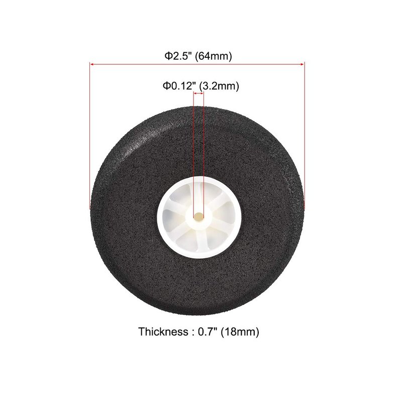 - [PACKAGE INCLUDED ] - 6pcs 2.5" Diameter RC Airplane Wheels.