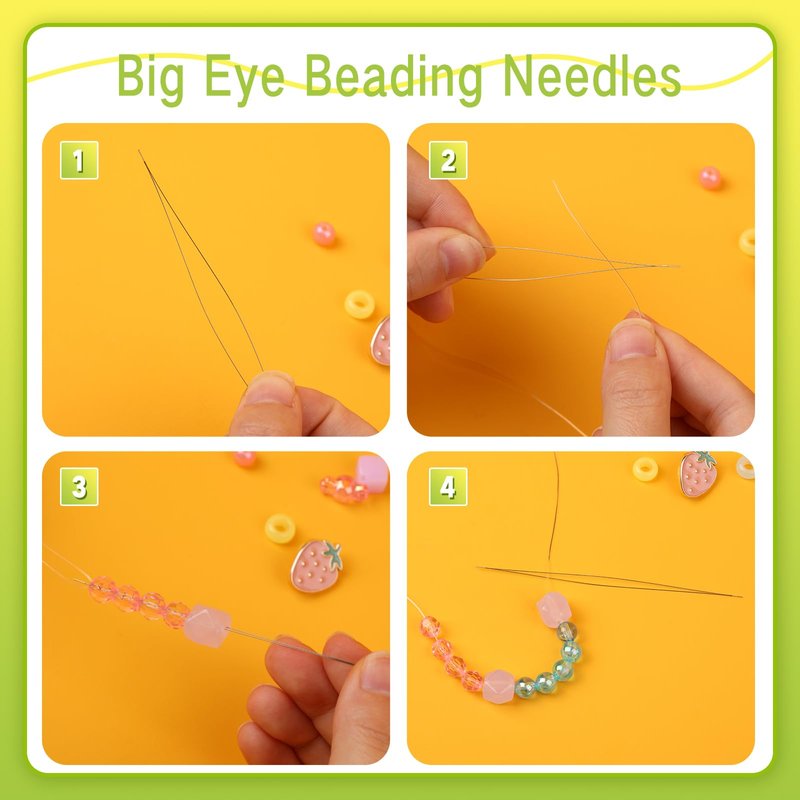 - EASY STORAGE: This beading supplies set comes with 2 needle bottles and a nice green storage box. The large eye beading needles and long straight beading needles are in separate bottles for easy use and storage. When you're done using your beading tools, put them in the storage case so they won't get lost.