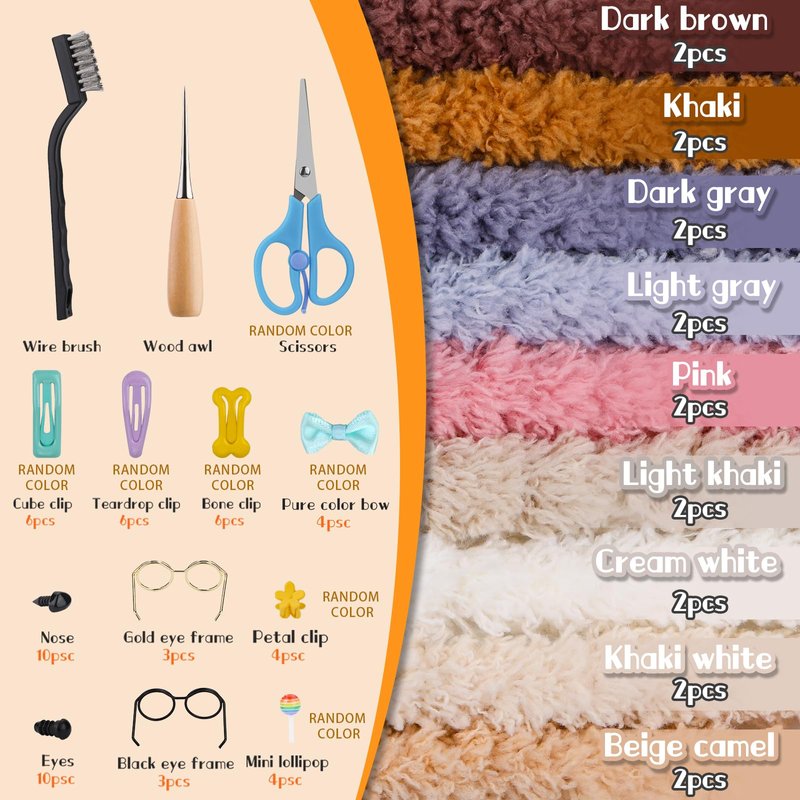 - Value Pack: The pipe cleaner craft supplies include 18 pipe cleaners, 10 plastic noses, 10 plastic eyes, 22 small hair clips, 4 mini bows, 6 mini plastic glasses, 4 mini accessories, an awl, a brush, scissors