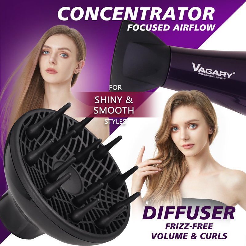 - Professional Hairdryer for Men & Women: This Vagary hair dryer is equiped with a 2200W AC Motor, offers faster drying experience than others. It just takes 2-6 minutes to make your hair smoothy and shinny, which can reduce much time for you