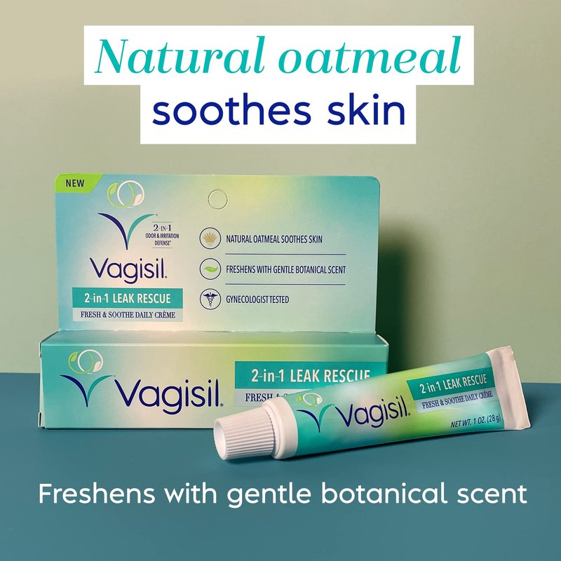 - Includes 1 tube (1 ounce) of Vagisil 2-in-1 Leak Rescue daily intimate cream