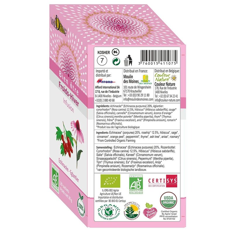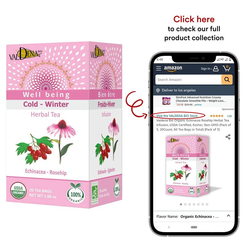 Valdena Bio Organic Echinacea Rosehip Herbal Tea Infusion (Pack of 3, total of 60 individually wrapped Tea Bags) Immunity boost, Immune support, Wellness tea, Kosher, Non-GMO