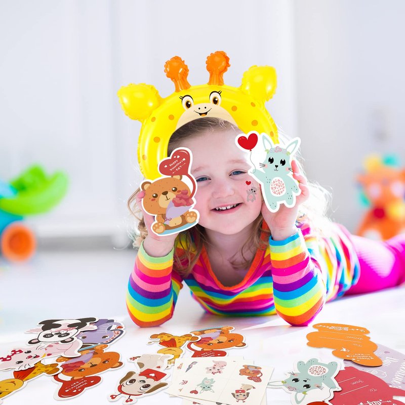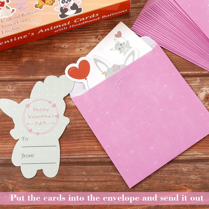 - đPerfect Valentines Cards Set for Kids classroom - There's no denying that love of animal should be equally expressed on Valentine's Day. Wearing on the animal balloon headbands, sending out the favorite animal Valentines cards, itâll give a whole lot of fun to friends and classmates.