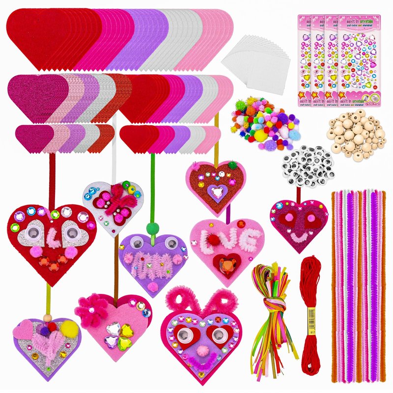 - FREE KIDS’ IMAGINATION - This Valentine's Day craft set with various kits and sizes, all tools included, which encourages diverse and colorful designs. Kids can craft a range of Valentine's Day heart projects, ensuring a creative and personalized touch. Use them as Valentine exchange gifts or as classroom prizes, sparking joy in every crafty endeavor.