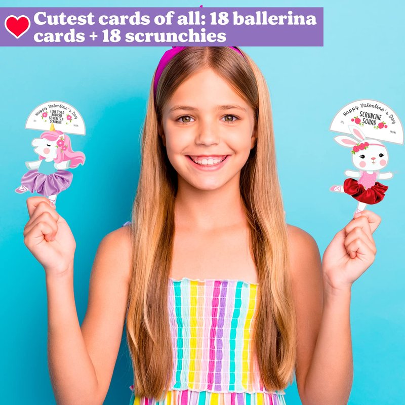 - CUTEST CARDS OF ALL: Tutu ballerina cards are a cute gift. They can be given to a group or as a replacement for candy. The best part? Each tutu is a scrunchie! This pack comes with 18 total valentine's cards + 18 scrunchies, so you'll have gifts for everyone.