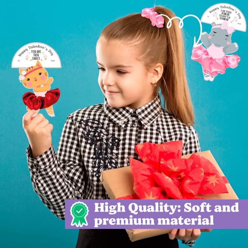If you are looking for the perfect gift for Valentine's Day, don't worry because we have it! The cutest cards of all: Tutu ballerina cards are such a cute gift. They can be given to a group or as a replacement for candy. The best part? This pack comes with 18 total valentine's cards and scrunchies, so you'll have gifts for everyone. Each tutu is a scrunchie! High-quality hair accessories for girls come with unique design cards that you will love from the first moment.