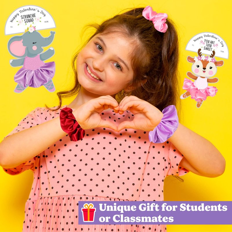 Valentines Day Gifts for Kids 18 Cards with Scrunchie Party Favors for Children. Valentine's Girls Friend Goodie Bag Stuffers, School Class Exchange Bulk Prizes