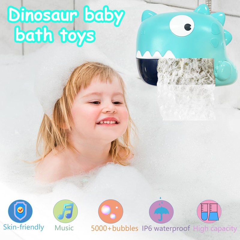 - 【Perfect Gifts for Toddlers】The baby bath toys and gifts for 3 4 5 6 7 8year old girls and boys. Dinosaur toys bubble machine is an ideal gifts for Valentines Day, Christmas, Easter, Halloween, Mother's day and Children's Day!!