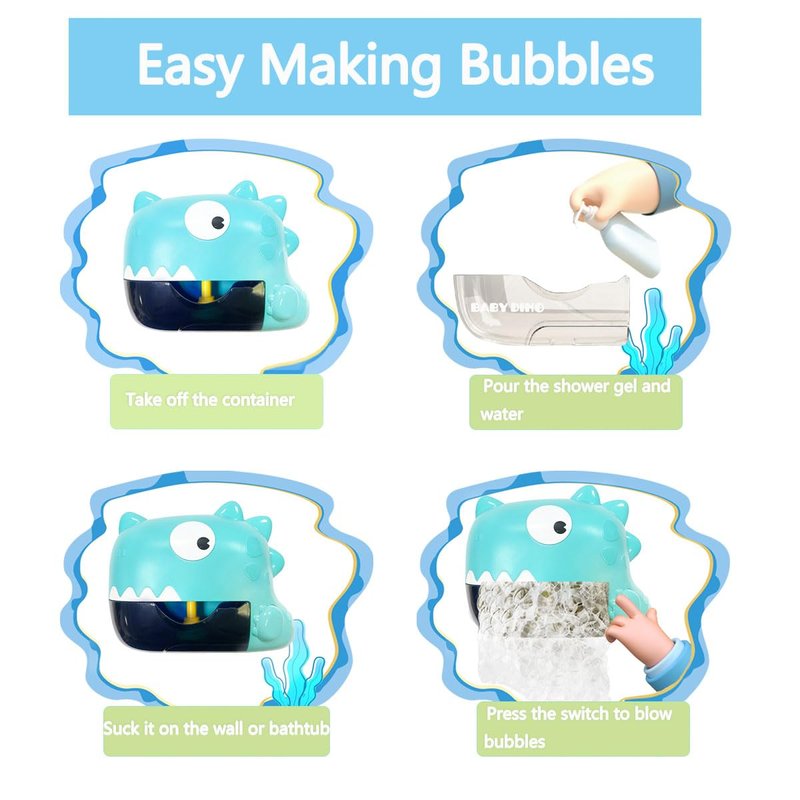 - 【Automatic Baby Bath Toys】Dinosaur bath toys contains 250ml capacity, built-in powerful motor can automatically generate lots of bubbles,quickly fill entire bathtub soon. Cartoon dinosaur image and bubbles bring more fun to help solve the problem of children's rejection of the bath!