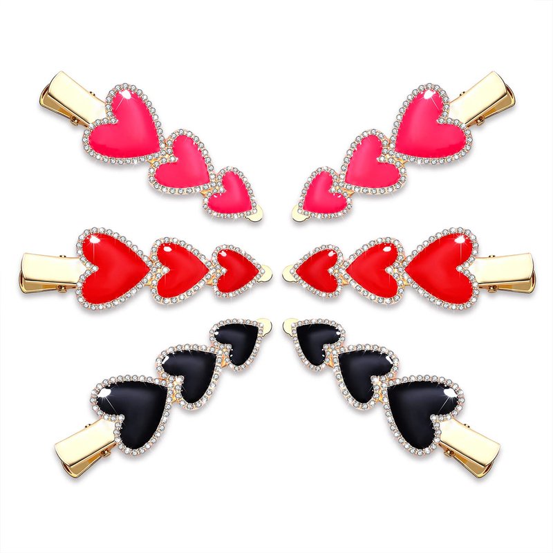 - ღ Fashion Heart Hair Accessories ღ Quickly change your look for Valentines date! our glitter triple heart alligator metal clip could simply beautify your hairstyle and add an adorable feeling to your dressing, you could wear it as cute photo props, accessories for costume, party or stage performance, and you can also apply it as daily hair accessories