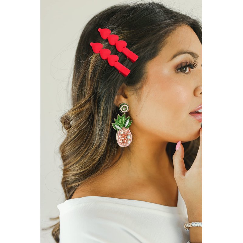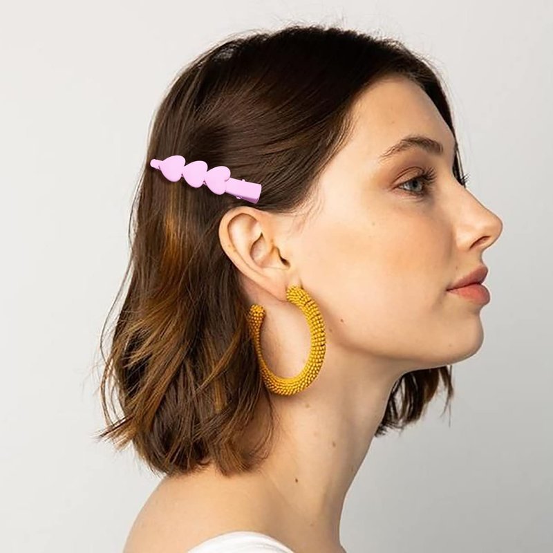 - Full Glam Hair Clips -- One part glam, one part romantic, and all parts pretty. The matte bright-coloured cupid heart-shaped petite hair clip barrettes is a great finishing touch to your hairstyle. We'd wear these stacked together for a chic vibe or on either side of our head for a cute and flirty look .And we also happen to think they make an excellent addition to updos, braided crowns, or to clip back your bangs.