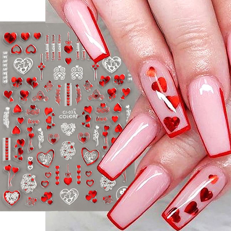- 💋 Package Include: 6 Sheets Valentine’s Day series 3D self-adhesive nail stickers
