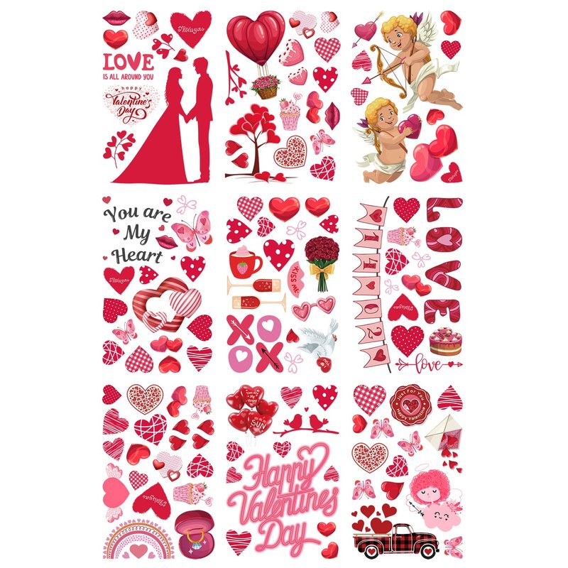 Valentines Temporary Tattoos Sticker 132 Pcs Valentines Day Decorations Tattoo Sets Cupid Heart Love Rose Bouquet Fake Tattoo Stickers for Lover Party Decorations Girls Women Favor Party Supplies (9 Sheets)