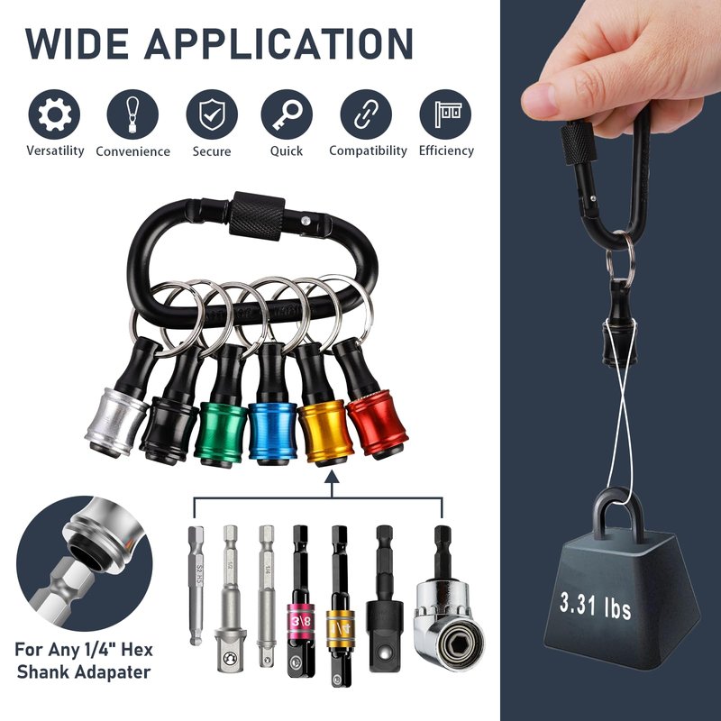 - IS THE HEX BIT HOLDER WORTH IT?—Absolutely! Crafted with high-strength materials, our impact bit holder keychain offers top-quality performance and exceptional durability. Whether you are a DIY enthusiast or a professional, our versatile tool set is perfect for various applications, making it a valuable gadgets to your toolkit