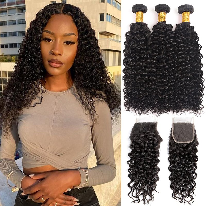 - 【Water Wave Bundles with Closure Material】100% Unprocessed Brazilian Virgin Water Wave Human Hair Bundles with 4x4 Lace Closure.All the Hair Extensions is Cut from Young Girls Directly ,No Synthetic or Animal Hair Mixed.