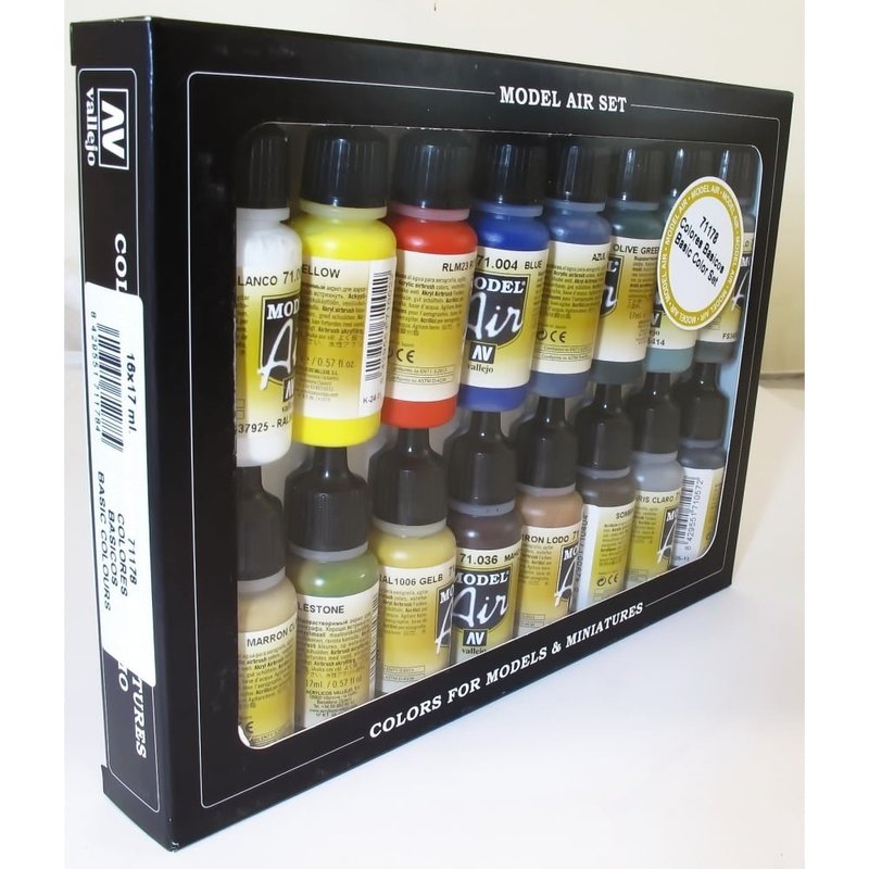 Vallejo Basic Colors: Acrylic 16 Airbrush Paint Set for Model & Hobby 71178, Black, 0.57 Fl Oz (Pack of 16)