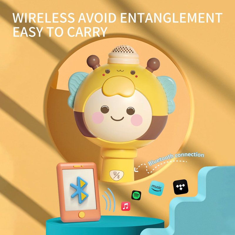 This is a children's wireless Bluetooth microphone, karaoke toy, you can listen to music and listen to stories, you can sing, with magic sound, cartoon shape is particularly cute and interesting, suitable for children to play