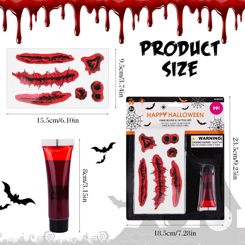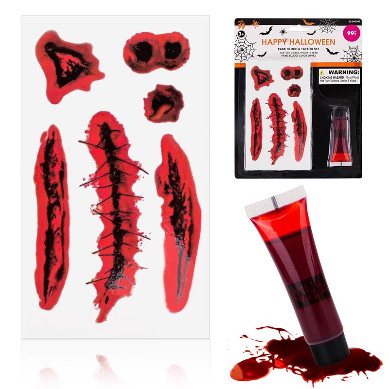Vampire Fake Blood and Tattoo Set, Halloween Tattoo Stickers Wound Tattoo Stickers: