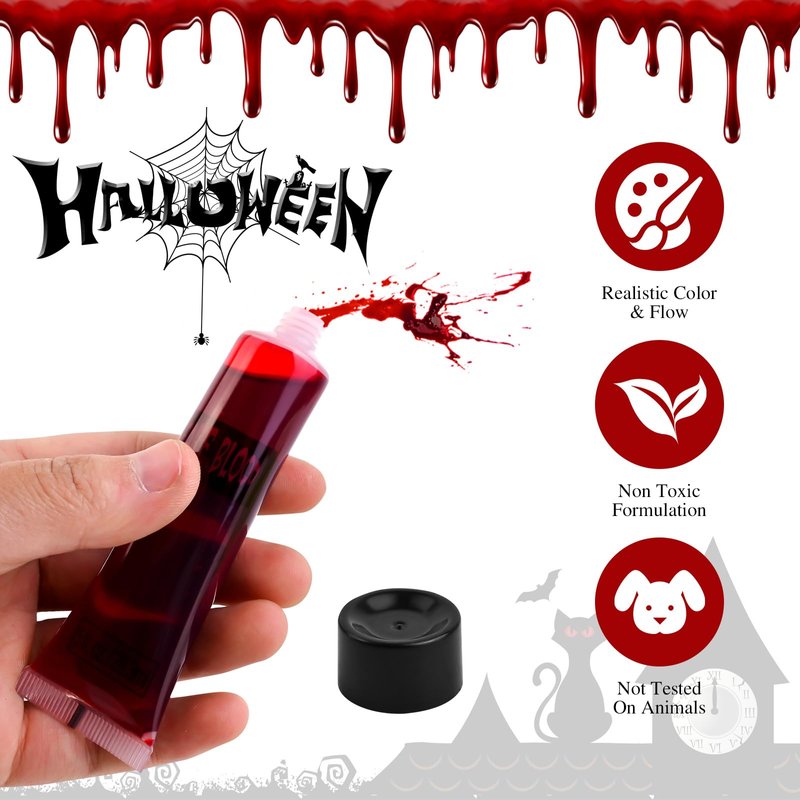- Halloween fake blood is crafted to mimic the genuine color, texture, and consistency of real blood, ensuring that your makeup, costume, or décor stands out in authenticity. Whether it's for a zombie look or a gruesome scene, the realistic touch will leave everyone in awe.