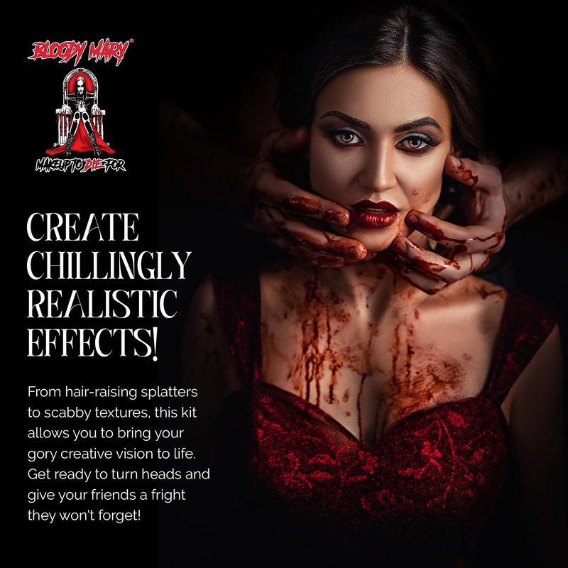Become a masterpiece of your dreams and nightmares with Bloody Mary's Deluxe Wicked Bite Vampire Makeup Kit for Adults!