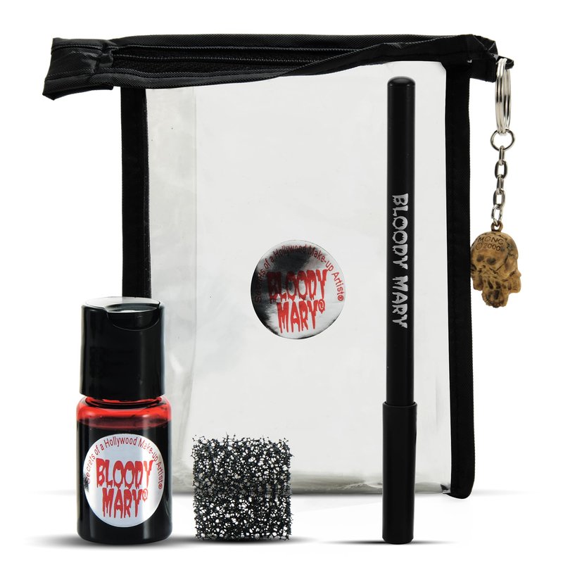 Vampire SFX Makeup Kit - Wicked Bite Special Effects Face Makeup Set with 1/2 Oz. Extra Thick Fake Blood, Black Pencil Liner, Stipple Sponge and Zipper Bag for Halloween or Stage - Bloody Mary